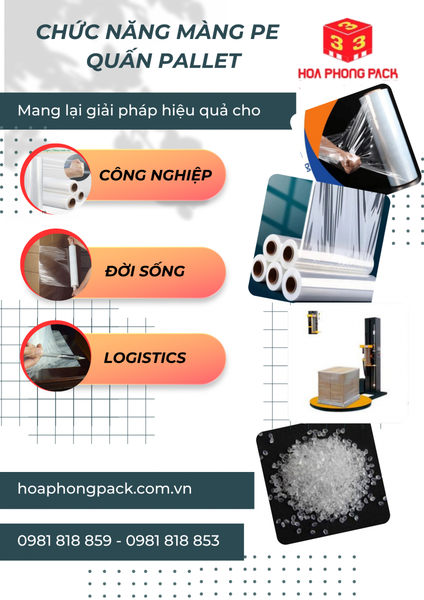 Đây là ứng dụng quan trọng nhất. Màng PE công nghiệp/stretch film được dùng để: